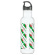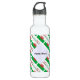 The Welsh flag with the word WALES below, in the colours of the flag, tiled, for a more aesthetic look. A white fractal of squiggly squares holds your name, allowing for a personalised touch or a customised gift of this stainless steel water bottle. The flag has a red dragon on a background of green and white.