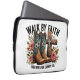 The sleeve is made of nice feeling material and seems very durable. I'm not sure how easy it'll be to clean, but the construction seems sound and the fabric is quick thick. I also like the double zipper. The printing is lovely and appears durable. The white on black contrast is nice, and the design very elegant.