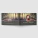 Photo memorial/funeral guest book featuring a misty woodland path with sunbeams coming through the trees.