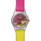 They color and design is exactly what I expected. Decent quality watch however the buckle is plastic that seems a little flimsy. They design is really cute and the colors were true to what showed online. If recommend offering a larger or oversized option since the is the design on the face and it is really quite small. It could be more of a statement pice of it was larger.