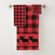 Walking Moose Silhouette Red Black Plaid Pattern Bath Towel Set