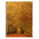 Notebook of a walking path through the golden beech trees in a forest in autumn colours in fall season in the Netherlands.