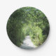 A nature design featuring a walking path with lots of greenery, tall trees.