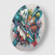 Adorn your space with this vibrant and intricate wall clock, showcasing a stunning 3D digital art piece. The design features an explosion of abstract shapes and organic forms, blending natural motifs with futuristic elements. The rich palette of colours and dynamic composition create a sense of movement and sophistication, making it a perfect statement piece for any modern interior.