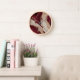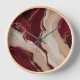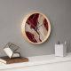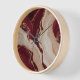 Wall Clock, 10" Round Natural Wood Frame with red marble design