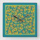 Wall Clock, Golden Butterflies on Teal Square Wall Clock