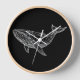 Track time with the grace of the deep sea. This 10-inch wall clock features a stunning white geometric humpback whale design, beautifully framed in natural wood for a warm, modern aesthetic.