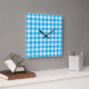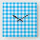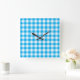 Wall Clock, Turquoise Blue and White Check Gingham Square Wall Clock