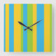 Wall Clock: Turquoise, Yellow, Green Stripes Square Wall Clock