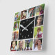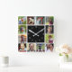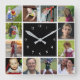 A colorful wall clock with 12 personal photos placed around the clock face of a dark color. The photos are easily replaced with you own by using the template.