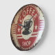 Coffee lovers, you will love this fun, wall clock with a graphic, vintage coffee shop sign design that has a three dimensional look.