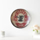 Wall clock with coffee shop sign with red, black