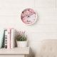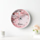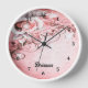 Pink Wall Clock, shown in white, with swirls, a rose, and faux sparkles. The name on the clock can be changed. Thanks to Creative Fabrica for some of the elements in the design.