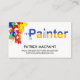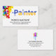 A white wall is ruined by a paint splatter. Only an expert "painter" can rectify this. This painter signage creation has an underlying roller brush, ladder and paint bucket design. Near the base lies your prestigious name and the contact details.