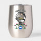 Shiny silver Wallace clan badge on a stainless steel thermal tumbler all set for any of your hot or cold drinks! Be ready for your next clan gathering, picnic, highland games, BBQ or poolside! Featuring a tartan set of bagpipes on the back and you can also personalise with a short message!