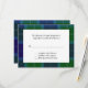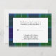 Lovely traditional Wallace tartan plaid wedding response RSVP card. A white text area lays in the middle of the lovely blue and green plaid pattern, with black text that is fully customisable to suit your needs.