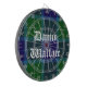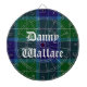 Great looking custom dart board done in the traditional blue, green, and white Wallace Scottish tartan plaid. White old world style text is ready to personalise for yourself or as a great gift idea.