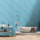 Smooth Vinyl Wallpaper with a pattern of turquoise bubbles. This was designed especially for the bathroom. Check out the coordinating bathroom decor. This design comes from Oregon tile maker Fay Jones Day.