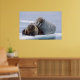 Walrus cow and calf rest on a sea ice floe poster