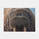 This doormat features a walrus closeup. The expression of this gentle giant's face could be expressing serenity, curiosity, confusion, anger, or other moods. With its large size, rough skin, long tusks, and stately posture, this bull might be considered handsome by females of the species. Walruses are icons of Alaska, Canada, Greenland, and other arctic areas.