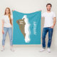Create a cool personalised gift for someone who loves walruses. This fleece blanket has an illustration of a walrus floating on a chunk of ice or an iceberg. The realistic style illustration of the walrus is in brown against a turquoise blue background. It's ready to be personalised with a name or other text below the graphic in white lettering.