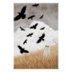 Walter The Lovely Ghost is haunting a field and has disturbed the crows who take flight in the grey autumn sky.