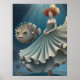 AI generated art of a woman named Wanda and a pufferfish in an undersea fantasy adventure