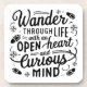 Inspirational coaster with the phrase "Wander through life with an open heart and curious mind".