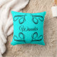 Modern and trendy aqua with swirls design throw pillow. Black script typography 'wander' on both sides.