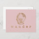 Wander Travel Quote and Globe in Blush and Gold Postcard