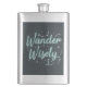A futuristic and thrilling design featuring the text "Wander Wisely" in a neon-like font, glowing against a starry night sky with constellations, representing the endless possibilities of the universe.