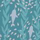 A pod of narwhal wander under the ocean, surrounded by a school of fish and seaweed. Part of the Narwhal Dreams Collection.