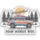 Embrace your wild spirit with this inspiring "Roam and Roam Wander Wide" sticker, featuring the word "Wanderlust" alongside a camping van set against a scenic nature backdrop with majestic mountains, evergreen trees, and open skies. Perfect for travel lovers, camping enthusiasts, and those who feel most alive on the road, this artwork celebrates the thrill of exploration and the call of the wild. Ideal for adventurers, road trippers, and anyone with a free soul and a love for the outdoors.