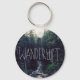 Hand lettered type, “Wanderlust” layered over photograph of Rainier Creek.