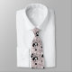 Beautiful neck tie with stunning pattern representing travel-themed elements in shades of pastel pink, white and black
