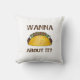 Throw pillow features an original marker illustration of a taco, with WANNA (TACO) ABOUT IT? in a fun font. Perfect for your favourite foodie!