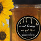 This cute round label will definitely catch attention and bring a few smiles! Black label makes the gold of your honey stand out and the drips look so realistic, you might even find yourself reaching to wipe them off! Happy Beekeeping!