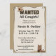 Wanted Poster cowgirl Birthday invitation for a girls birthday Party. Design has a boot with a brown boot and a brown cowboy hat. Customise your birthday party invitations with your party details.