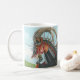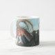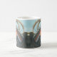 This mug features "War Horse" a foil Dust Reward promo card from the Arthurian Legends expansion of Sorcery: Contested Realm. The intricate black gothic style crinet is adorned with spikes, and the shaffron shows off huge horns, evoking a sense of power and grandeur. All this in contrast with a backdrop of a serene, grassy landscape.