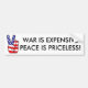 WAR IS EXPENSIVE PEACE IS PRICELESS bumper sticker