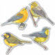 An assortment of adorable warblers (top left: Prothonotary Warbler; top right: Prairie Warbler; bottom left: Hooded Warbler; bottom right: Canada Warbler).