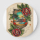 Create a visually striking tattoo design that infuses the tropical allure of Monterey, California, with the bold, iconic styles of Sailor Jerry and Ed Hardy. The design should be perfect for a t-shirt, incorporating a light colour background to ensure the artwork stands out. Here are the elements to include:
