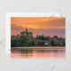 The picturesque village of Warkworth, Northumberland with it's striking castle ruins at sunset.