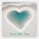A heart-shaped pool of water with aqua hues is nestled within a sandy beach, surrounded by foamy waves. The ocean meets the shore in the background, creating a serene and romantic scene.