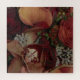 Warm autumn colours of deep reds, warm honey gold, and dark greens.