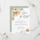 Warm Autumn Sunflowers Sage Burnt Sienna Pastel Orange Wedding Save the Date... Our fall wedding Save the Date features floral designs of warm autumn sunflowers and buds in shades of burnt sienna and pastel orange with cream coloured roses and sage botanical greenery. The text for Save the Date is displayed in trendy modern handwriting script in a soft charcoal shade with the invitation text below it in classic serif and romantic italic typography in the same colour. A QR code for your website adorns the sage back of the card to allow your guests to follow along as you post additional details on your wedding website. The wedding website QR code and all text (aside from the calligraphy graphics) can be easily revised with your own info using the personalisation template.