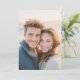 This wedding invitation features a warm, intimate photograph of two individuals smiling closely together, capturing a candid moment of joy and affection. The design employs a soft colour palette with natural tones, highlighting the subjects' expressions against a blurred background that enhances focus on their connection. The art technique utilises high-resolution photography with shallow depth of field, creating a lifelike representation that feels personal and genuine. Perfect for couples seeking to convey warmth and authenticity, this invitation sets a loving tone for celebrating your special day.