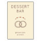 This wedding tabletop sign features a charming and minimalistic design with a beige background. The layout includes bold, uppercase text reading "DESSERT BAR" at the top, accompanied by two overlapping decorative rings symbolizing unity, adorned with small hearts above them. Below the rings, the phrase "please take a treat!" invites guests to indulge in sweet delights. The color palette consists of warm beige, black, and red accents, creating an inviting and joyful atmosphere perfect for celebrating special moments.