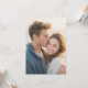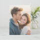 This wedding invitation features a warm and intimate design, capturing a tender moment between two individuals. The layout is centered, with the subjects filling most of the frame to emphasize their affectionate connection. Soft beige and light blue hues create a serene atmosphere, enhanced by natural lighting that adds a gentle glow. The photographic style highlights realistic details, conveying happiness and closeness through smiling expressions and physical proximity. Perfect for celebrating love and commitment, this design evokes joy and warmth, making it ideal for couples looking to share their special day.