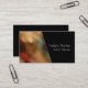 Warm, blurred photo beside solid black diagonal business card